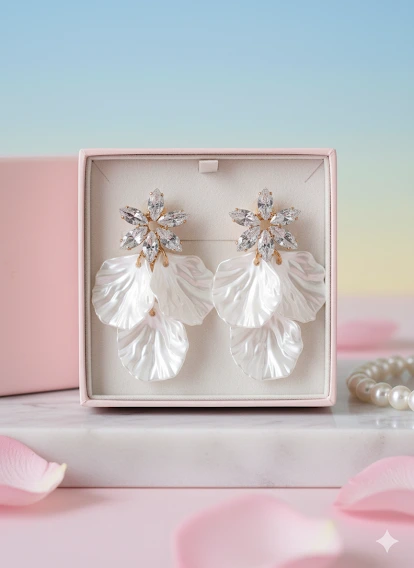 মেটাল: হুক বা বেইজ মেটালটি সোনালি রঙের (Gold-plated), যা সাদা পাপড়ির সাথে একটি রাজকীয় লুক তৈরি করে।